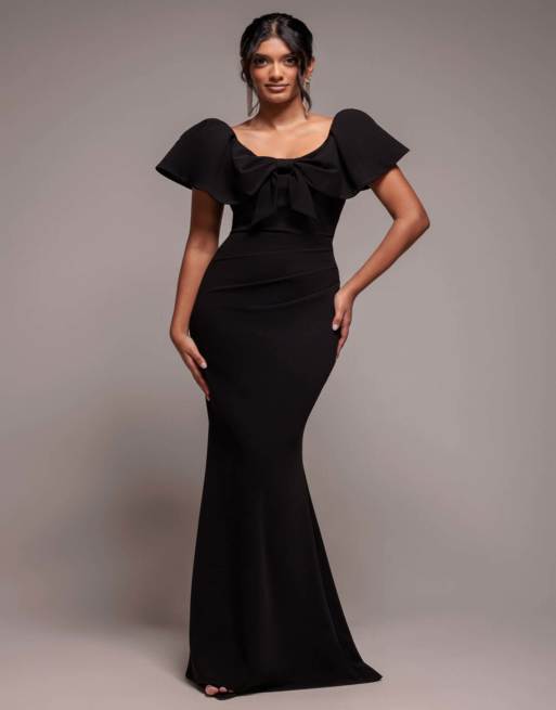 Goddiva Cape sleeve detail front tie maxi dress in black