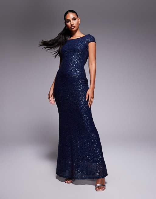 Goddiva Cowl back sequin maxi dress in navy