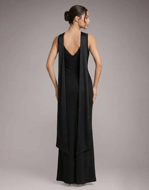 Goddiva Petite satin multi tie halterneck maxi dress in black