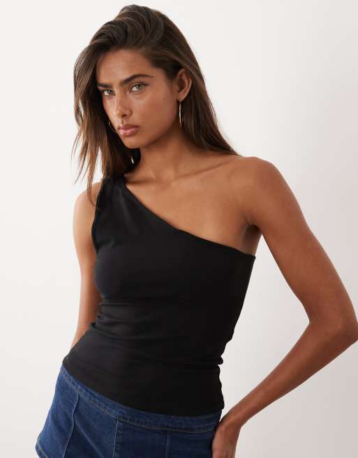 Good American cotton super stretch one shoulder top in black