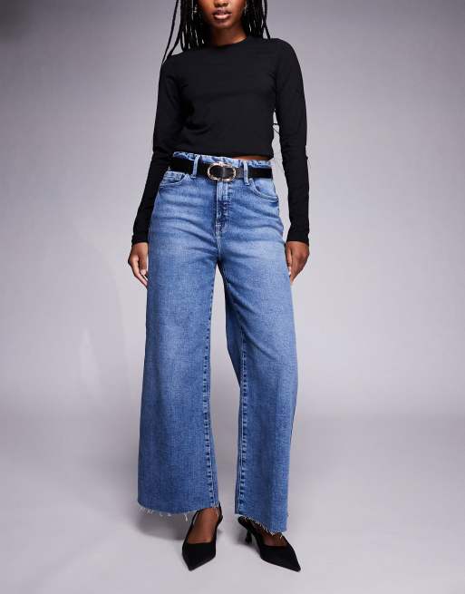 Good American good skate wide cropped jeans in dark blue