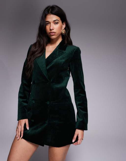 Good American velvet blazer dress in dark green