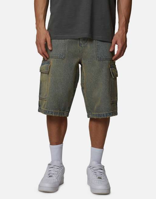 Good For Nothing Baggy washed denim cargo shorts in blue