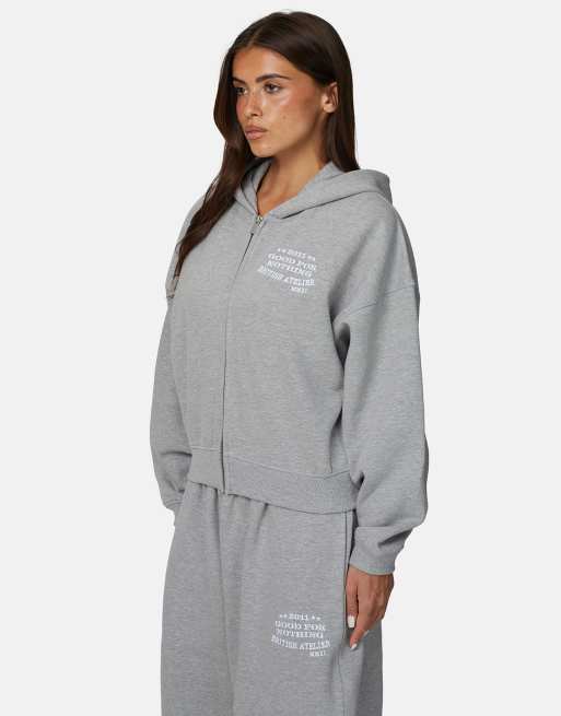 Good For Nothing Baggy zip hoodie with embroidered logo in grey