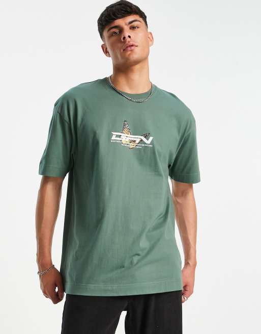 Good For Nothing butterfly graphic print oversized t-shirt in khaki