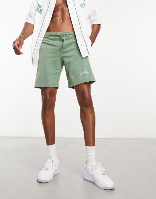 Good For Nothing co-ord acid wash jersey shorts in khaki with logo print