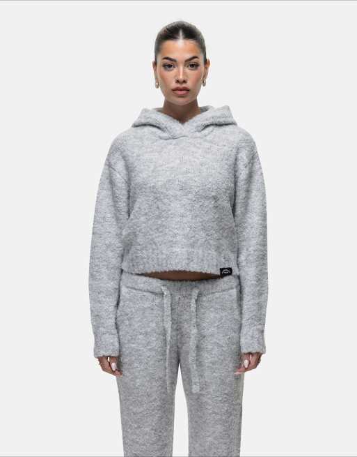 Good For Nothing Cropped bouclé knitted hoodie in grey