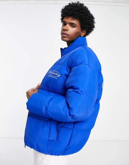 Good For Nothing oval oversized puffer jacket in blue with logo print