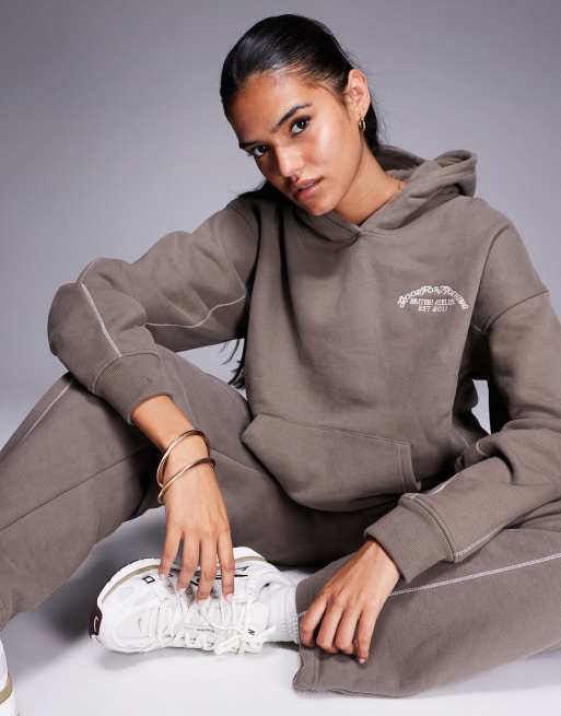 Good For Nothing Overlock stitch relaxed hoodie in taupe