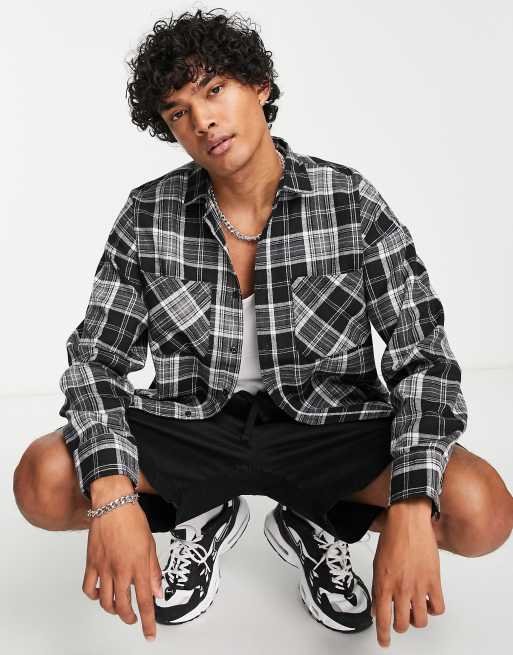 Good For Nothing oversized brushed flannel shirt in grey check