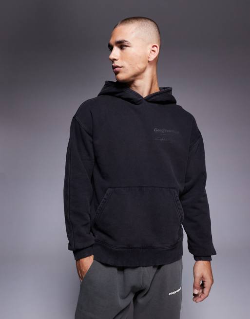 Good For Nothing Oversized graphic back print overhead hoody in black