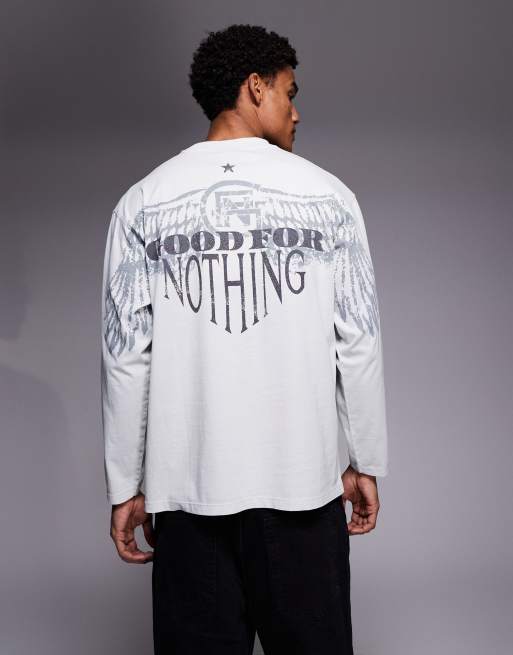 Good For Nothing oversized long sleeve t-shirt in off white chest and back print