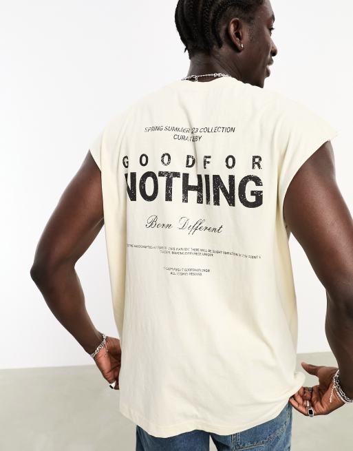Good For Nothing oversized sleeveless t-shirt in off white with large back placement print