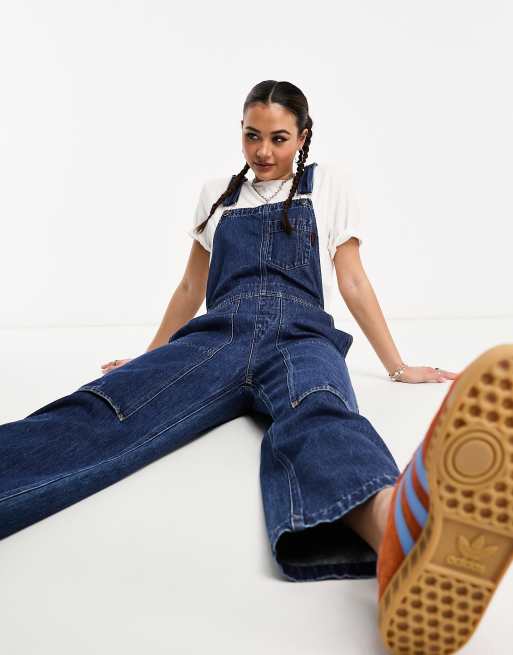 Gramicci denim overalls in blue mid wash