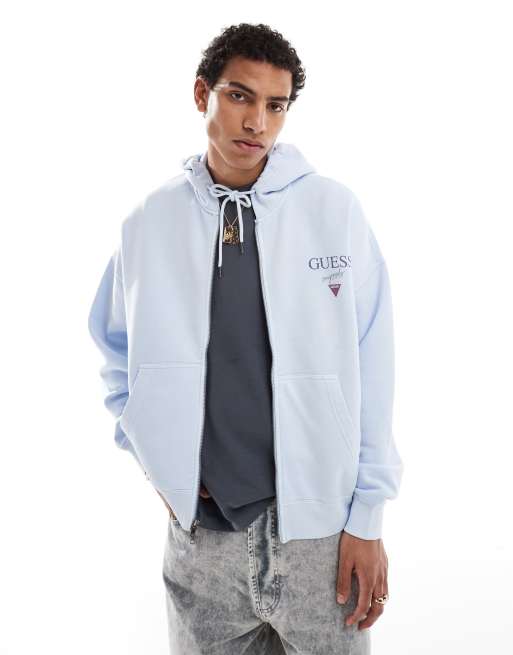 Guess Originals unisex stacked logo zip through hoodie in light blue