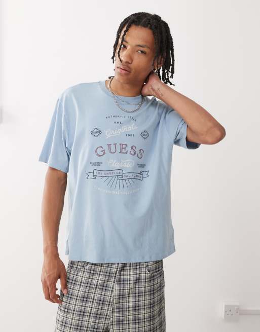 Guess Originals script t-shirt in light blue