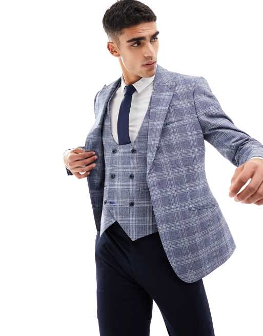 Harry Brown check skinny fit suit jacket in light blue