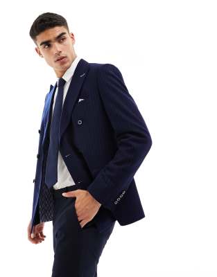 Harry Brown pinstripe slim fit double breasted suit jacket in navy