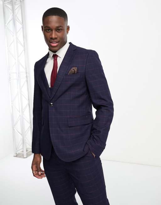 Harry Brown skinny fit suit jacket in navy & red check