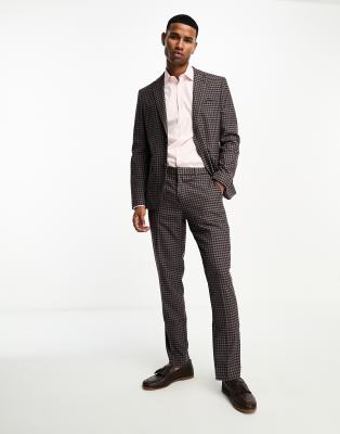 Harry Brown slim fit suit trousers in red gingham check