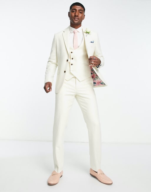 Harry Brown wedding wool blend slim fit tweed suit in cream