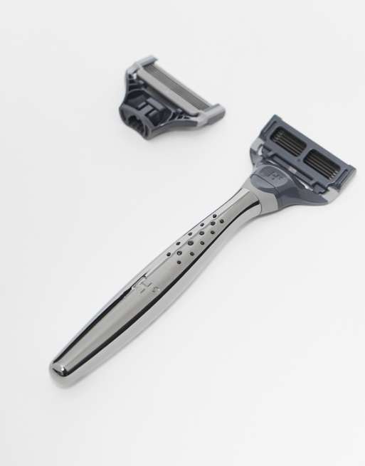 - 5-blade razor cartridges feature a flex hinge, lubricating strip and precision trimmer for a neat, smooth finish