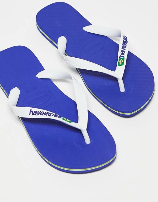 Havaianas unisex Brasil Logo flip flops in blue and white