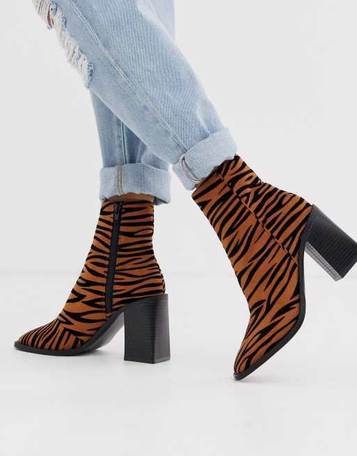 Head Over Heels Olivee tiger print heeled ankle boots with square toe
