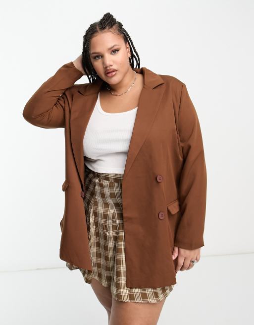 Heartbreak Plus oversized dad blazer in chocolate brown