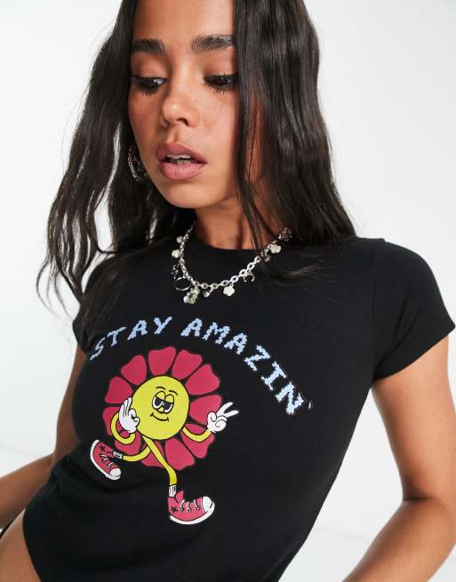 Heartbreak cropped t-shirt with stay amazin print in black