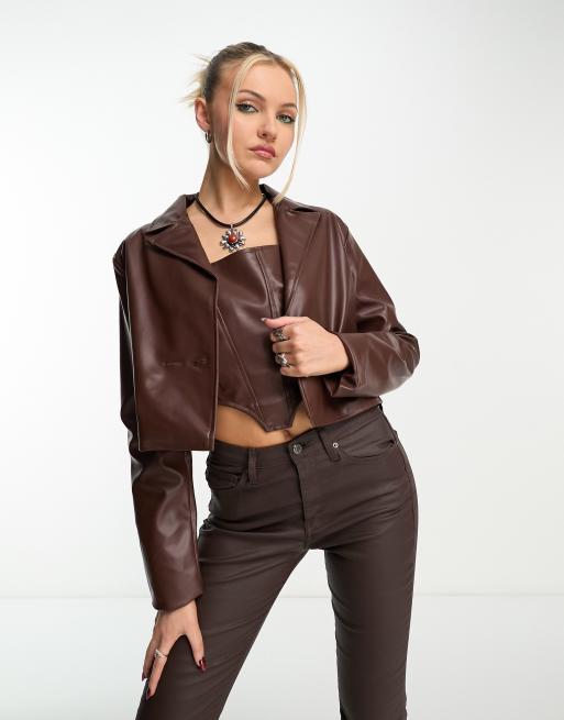 Heartbreak faux leather cropped blazer co-ord in chocolate brown