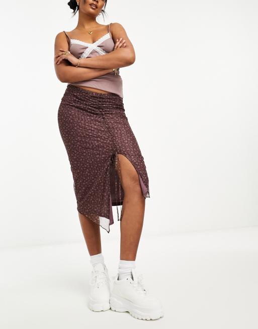 Heartbreak mesh midi skirt with split in ditsy floral print