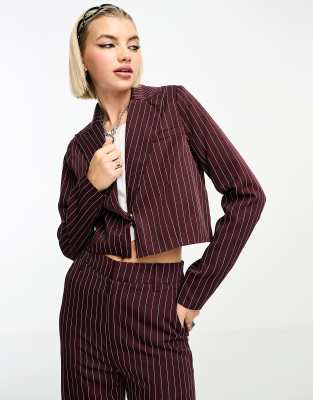 Heartbreak pinstripe cropped blazer co-ord in burgundy