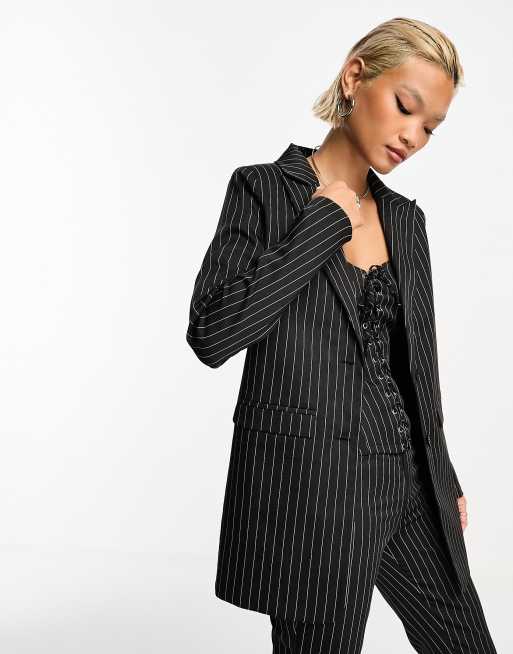 Heartbreak pinstripe oversized blazer co-ord in black and white