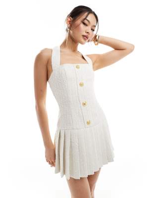 Heiress Beverly Hills premium boucle gold button detail pleated hem mini dress in cream