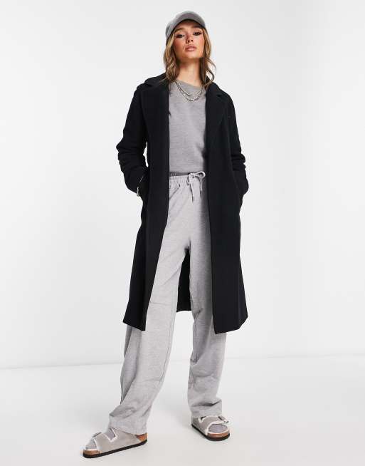 Helene Berman classic mid length wool blend wrap coat in black