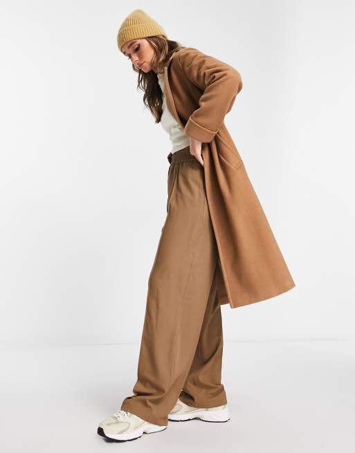Helene Berman classic mid length wool blend wrap coat in camel