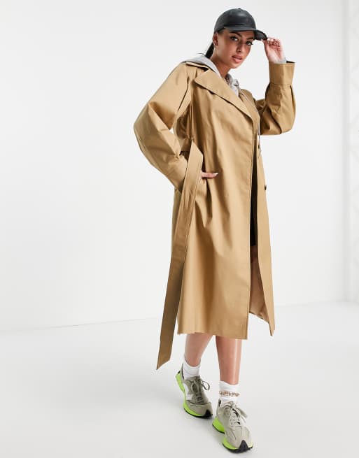 Helene Berman voloume sleeve wrap trench coat in camel
