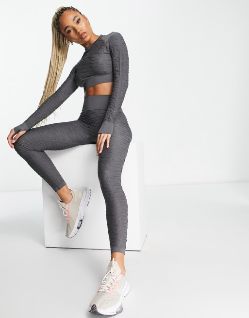 HIIT Seamless textured long sleeve crop top bralet booty short and legging in c
