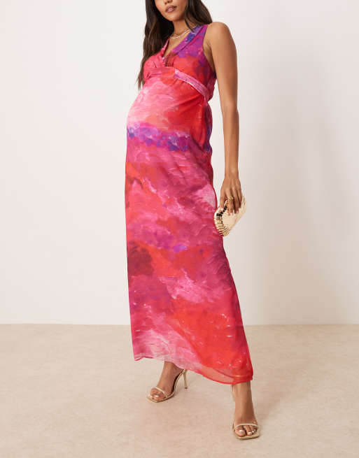 Hope & Ivy Maternity v-neck maxi dress with tie back in pink print