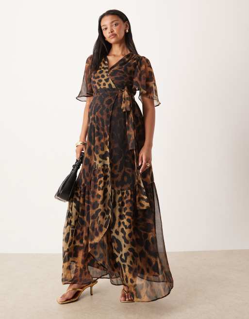 Hope & Ivy Maternity wrap front maxi dress in brown leopard print