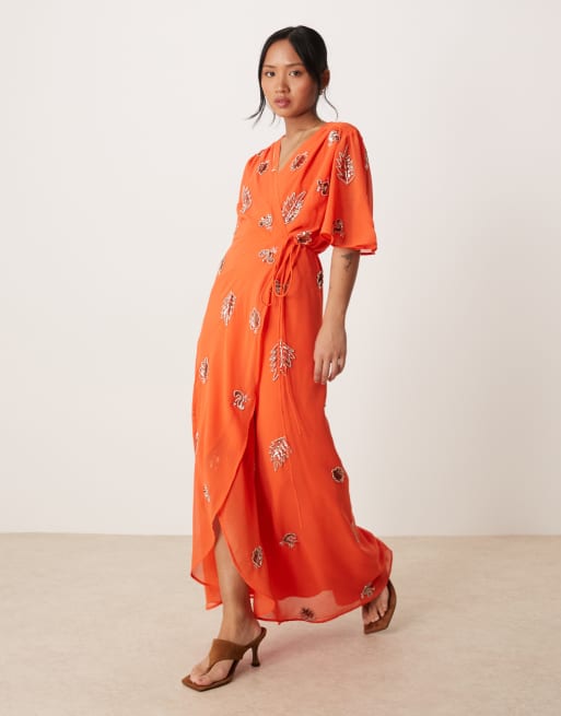 Hope & Ivy Petite embellished maxi wrap dress in orange
