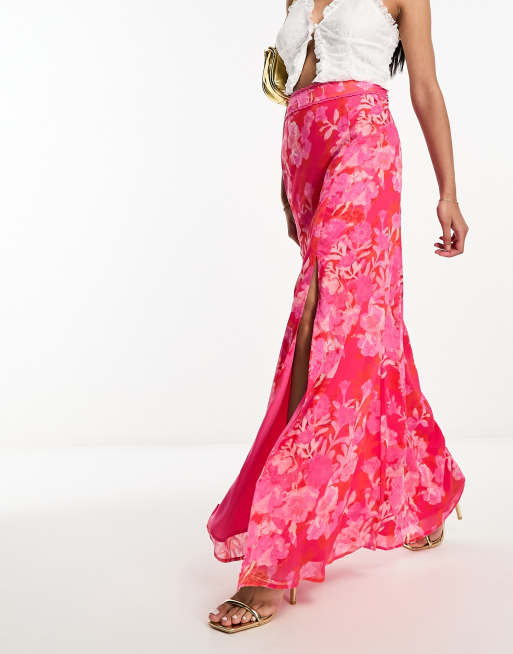 Hope & Ivy thigh split maxi skirt in red and pink floral