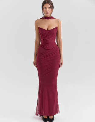 House of CB Cassidy fluted hem mesh maxi skirt in cabernet