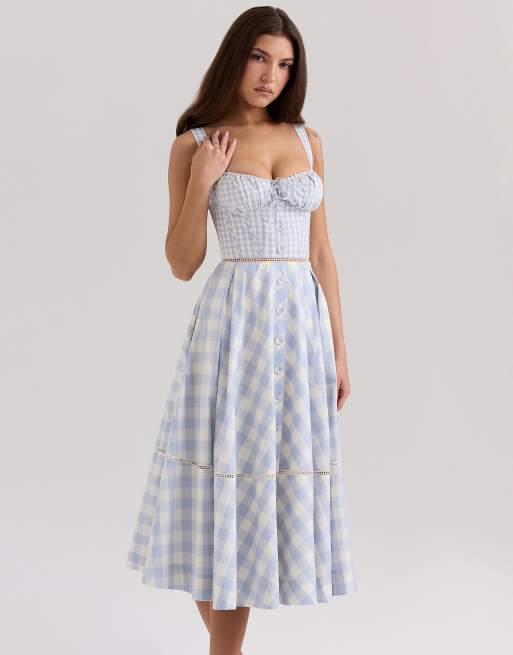 House of CB Chiarina gingham stretch cotton midi dress in light blue