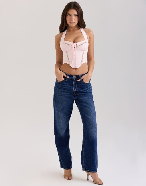House of CB Demi embroidered stretch cotton corset top in pink floral