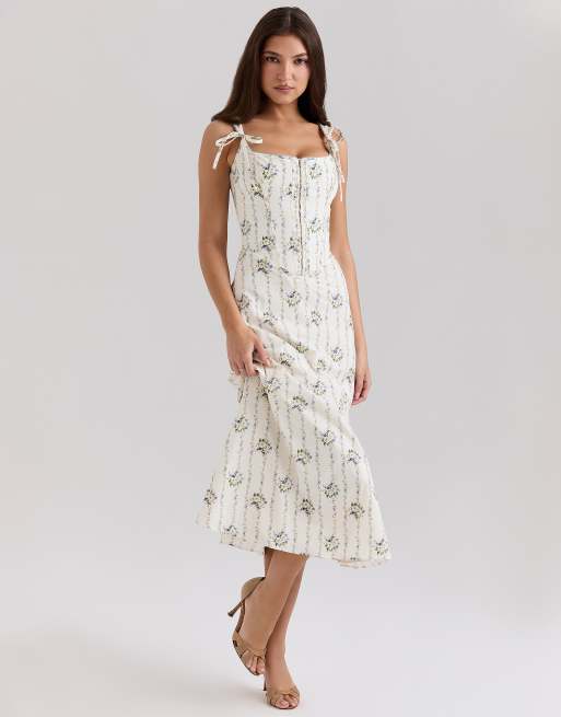 House of CB Dionne stretch cotton midi dress in cream daisy print