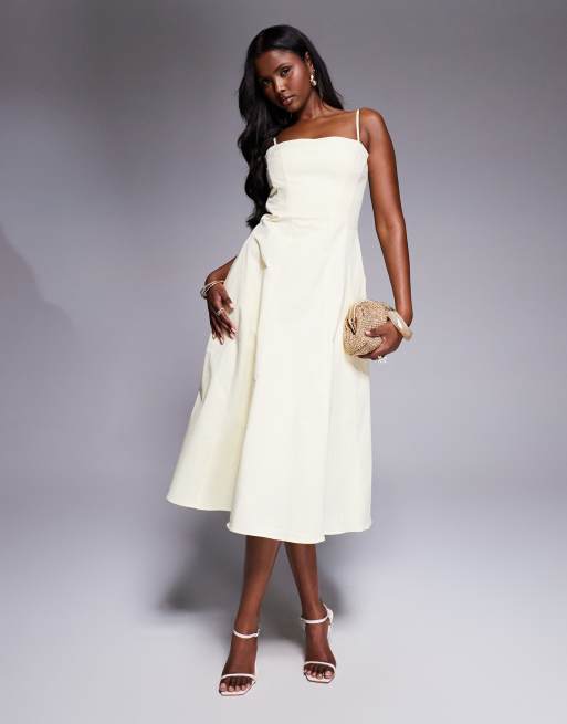 House of CB Dolly stretch cotton a-line midi sundress in lemon