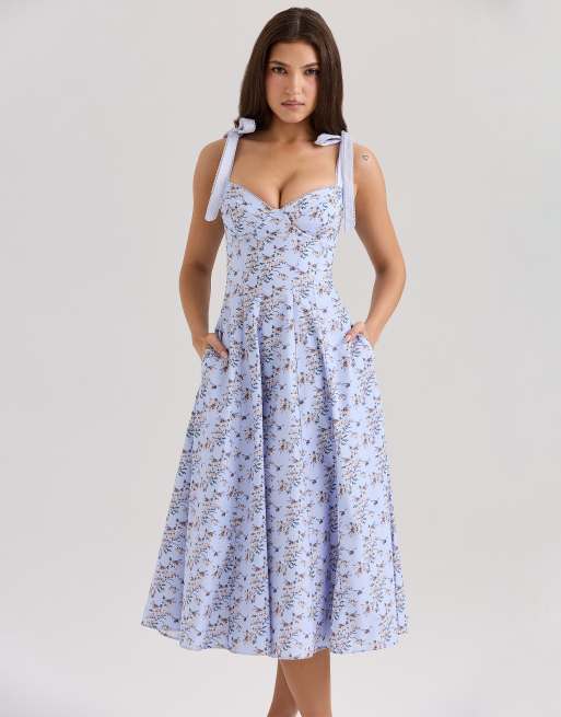 House of CB Emely stretch cotton midi sundress in blue floral print