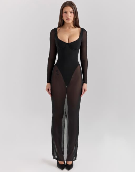 House of CB Everly maxi dress with bodysuit in black